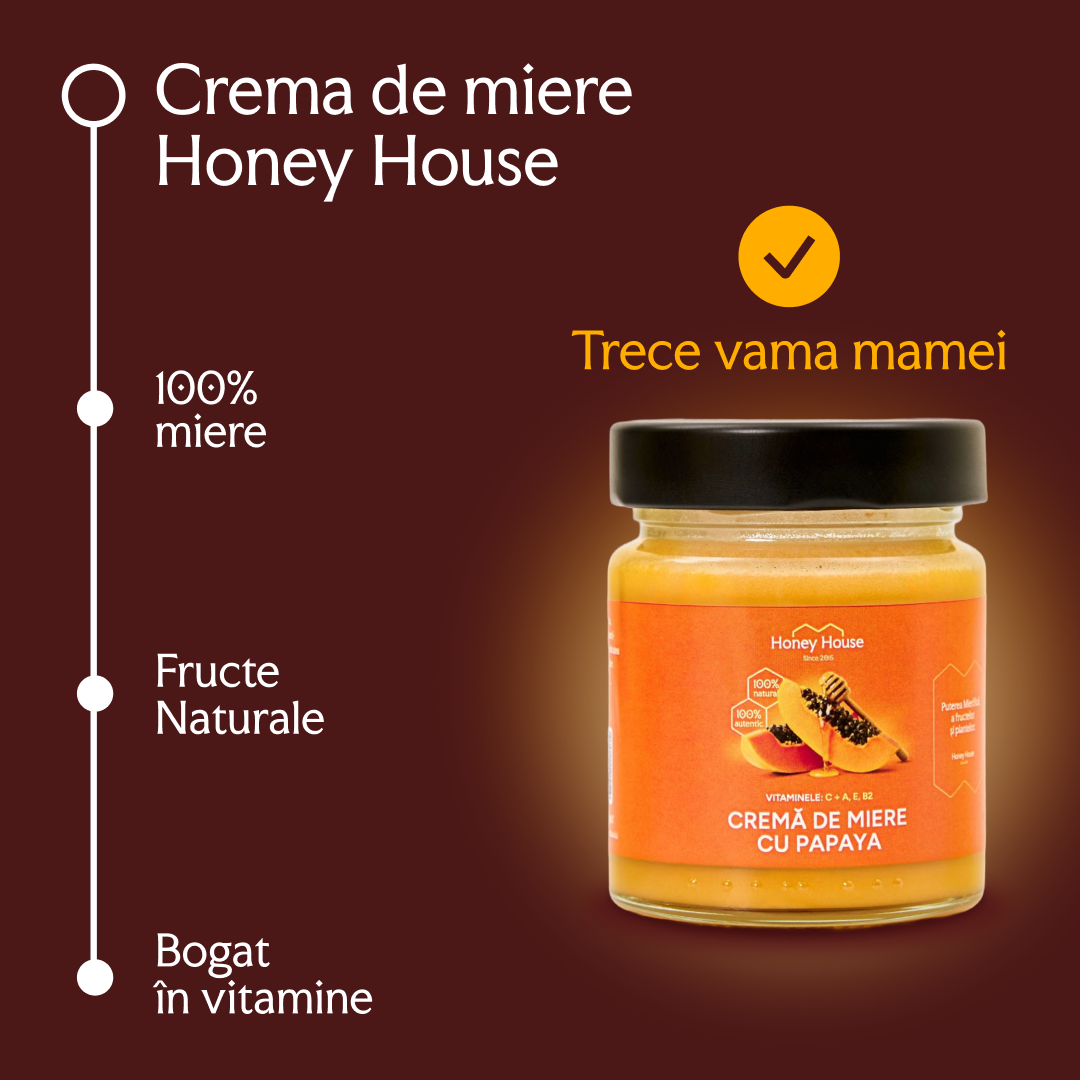 - Mesajul: Crema de miere este 100% naturală, fără zahăr rafinat. Am creat un val de încredere: copiii o cer pentru că e delicioasă (mango, papaya, fructul dragonului), iar mamele o aprobă pentru că e sănătoasă.