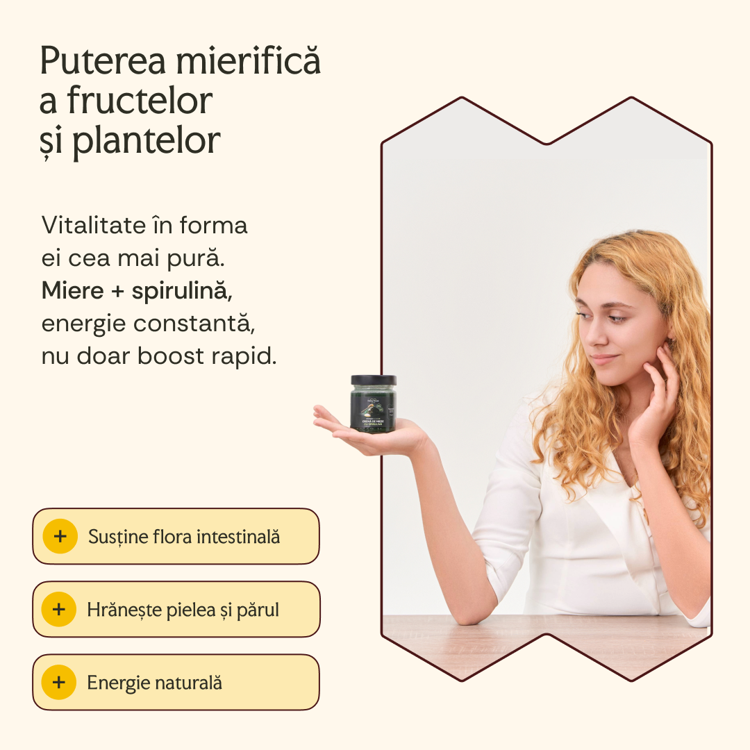 Mesajul: Ne-am concentrat pe beneficiile funcționale (mierea cu spirulină sau lămâie și ghimbir), poziționând produsul ca un aliat al vitalității zilnice.